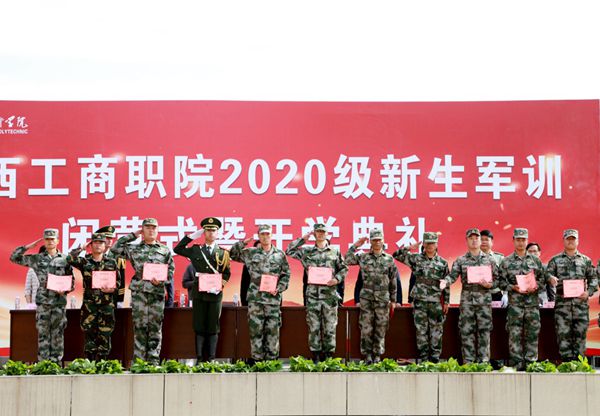 軍訓會操表演之后,胡志鵬副校長宣讀對軍訓優秀標兵、優秀指導老師、優秀教官、優秀連隊的表彰決定,趙頂興書記向承訓單位贈送寫有“新生英姿描繪未來工商,教官風采盡展美麗校園”的錦旗。隨后,胡鵬飛校長助理總結了2020級新同學軍訓工作,教官代表、教師代表和新老生代表分別做了精彩的發言。