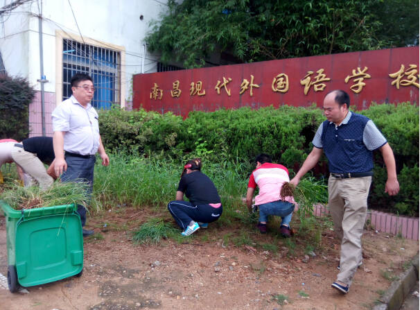 校園環(huán)境的好壞是家長(zhǎng)對(duì)學(xué)校認(rèn)識(shí)的第一印象。校辦公室在努力做好招聘老師、協(xié)助招生工作的同時(shí),積極做好校園衛(wèi)生工作。為提升學(xué)校的整體形象,楊校長(zhǎng)還親自帶領(lǐng)行政處室人員頂著烈日,將校園內(nèi)外的雜草拔除干凈,同時(shí)各學(xué)部校長(zhǎng)也積極督促清潔工人,將本學(xué)部衛(wèi)生包干區(qū)打掃干凈。