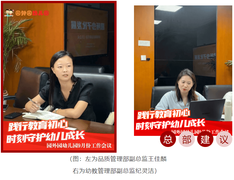 其次,各園長就如何提升教學水準、如何更好踐行園外園“三育·四愛”課程等議題展開討論,同時幼教管理部副總監紀靈潔、品質管理部副總監王佳麟就各園所存在問題提出建議。