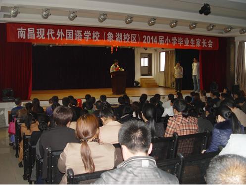 4月21日下午,南昌現代外國語學校(象湖校區)在校報告廳召開了2014屆小學畢業生家長會