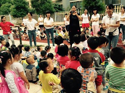 9月30日,為了迎接中華人民共和國65華誕,江西園外園幼兒園舉行了“愛祖國愛家長”慶國慶歌詠會。孩子們在老師的指揮下盡情放歌,大班組表演了《大中國》、《愛我中華》、《一二三四歌》、《聽媽媽講那過去的事情》、《國歌》、《我是小海軍》,中小班演唱了《祖國祖國多美麗》、《紅太陽照山河》、《我愛北京天安門》、《娃哈哈》、《頌祖國》。他們稚嫩的聲音和燦爛的笑臉表達了對祖國的熱愛,也迎來陣陣掌聲和歡呼聲?;顒蝇F場歌聲、笑聲、歡呼聲匯成了一片歡樂海洋。