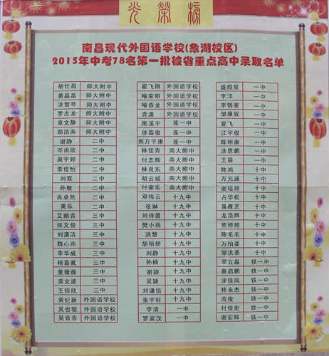 今年,在現(xiàn)外象湖校區(qū)擴班背后離不開好口碑的支撐,2015年,象湖校區(qū)中考創(chuàng)造輝煌,500分以上的考生達到100人,3人成績超過600分,78人被省第一批重點高中錄取,其中,6人錄取師大附中,8人錄取南昌二中。正是因為象湖校區(qū)這些令人興奮的成績吸引了學生家長的慕名前來,才有今年擴班形勢喜人的成果。