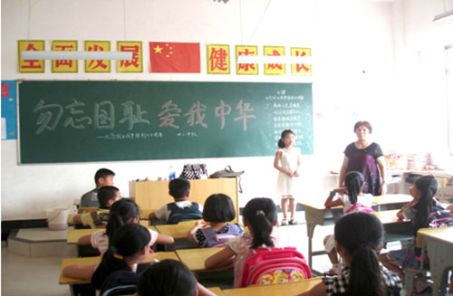 李金玉校長(zhǎng)利用校園廣播給全校4500多名學(xué)生上了第一課。李校長(zhǎng)首先簡(jiǎn)要的回顧了抗日戰(zhàn)爭(zhēng)的悲壯歷史,告訴同學(xué)們今天我們能夠坐在教室里享受和平生活,是我們的先人用生命和鮮血換來的,同學(xué)們要倍加的珍惜。同時(shí)要求各年級(jí)以“勿忘國(guó)恥”為主題,中學(xué)部出一期???,小學(xué)部開一次主題班會(huì)。讓全體師生全面了解抗戰(zhàn)的歷史、了解黨的豐功偉績(jī)和優(yōu)良傳統(tǒng)作風(fēng),在耳濡目染中感受到信念的力量,受到思想的啟迪,銘記歷史、緬懷先烈、珍愛和平、開創(chuàng)未來。
