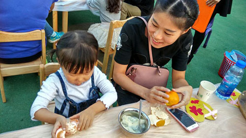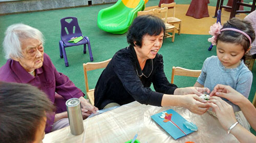 活動期間,孩子們為自己的爺爺奶奶表演了自己精心準備的的歌舞節目,把自己親手制作的賀卡交給了自己的爺爺奶奶并湊在他們耳根旁說上一句祝福的悄悄話,親手為自己的爺爺奶奶端上一杯熱氣騰騰的菊花茶,剝一片桔子,送上一塊重陽糕,和爺爺奶奶們一塊包餃子、品嘗餃子,濃濃的愛意,溫馨的氣氛在幼兒園中彌漫。