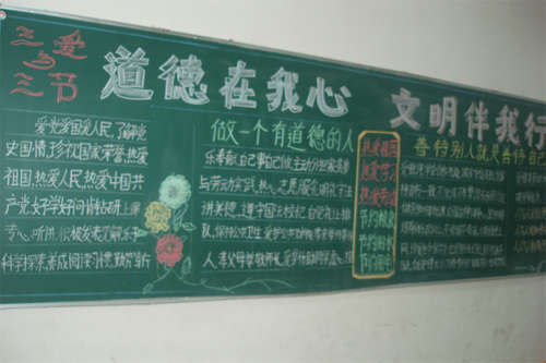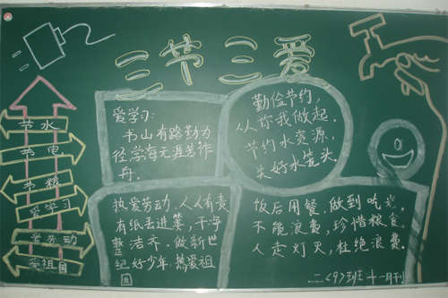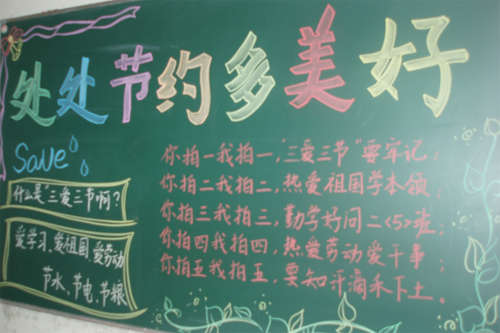 活動中,各班根據自己班級的特點,充分發揮學生的主動性,積極行動,精心設計出一塊塊主題鮮明、布局合理、形式多樣、融知識性、教育性于一體、內容豐富的黑板報。學生以自己獨特的方式表達了對“三愛三節”的理解,讓所有同學明白“三愛三節”的真實含義。學校評委從黑板報的標題、字體、圖案、文字內容、整體效果等項目進行了評比,評出了一、二、三等獎。