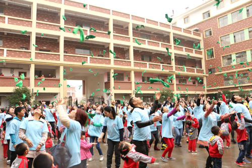 為了加強學校與家長之間的溝通與交流,增加孩子與家長之間的感情,豐富孩子的業余生活,給每個家長與孩子提供一個展現自我的平臺。11月14日上午,江西迪斯尼芳草園在園內操場舉辦了大型親子趣味運動會。盡管時值初冬,細雨紛飛,天氣陰冷,卻絲毫沒有減淡家長們的熱情。運動會尚未正式開始,迪斯尼幼兒園的操場上早已熱鬧非凡。