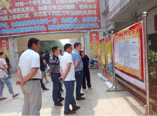 上午8:30,陸陸續續有家長到校,他們邊參觀學校的校容校貌,邊觀看學校成就展板、學校班級活動展板、受表彰學生展板和學生的獲獎作品展。