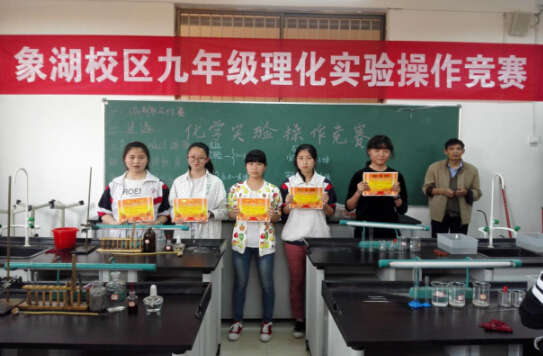 此次活動由初三年級組長負(fù)責(zé),吳利民老師主持,在班級競賽的基礎(chǔ)上,各班選派5名學(xué)生參賽。為確保本次實驗操作競賽規(guī)范、順利、安全、公正、客觀地進(jìn)行,學(xué)校制訂了活動方案。學(xué)校領(lǐng)導(dǎo)對各項工作做到了早安排早準(zhǔn)備早行動,為讓學(xué)生熟悉和規(guī)范實驗操作步驟,提升動手操作能力,理化教師除在正常的教學(xué)中加強實驗操作訓(xùn)練外,還堅持在課余加班加點指導(dǎo)學(xué)生操作,做到讓每位學(xué)生都能熟悉理化課本中的實驗內(nèi)容,操作步驟,豐富學(xué)生的實戰(zhàn)經(jīng)驗。 比賽活動中,工作安全有序地進(jìn)行,工作人員各司其職,按照操作程序規(guī)范做好工作??紙錾峡忌鶕?jù)抽簽項目,認(rèn)真細(xì)心地進(jìn)行操作實驗。測試員履行監(jiān)考職責(zé),仔細(xì)觀察每一位考生的每一個實驗操作步驟,并當(dāng)場給考生評定成績。整個考查過程中,考風(fēng)考紀(jì)嚴(yán)格規(guī)范,實驗操作成績良好,達(dá)到以賽促教、以賽促學(xué)的目的。張馨月等5名學(xué)生榮獲物理一等獎;繆欣等5名學(xué)生榮獲化學(xué)一等獎。