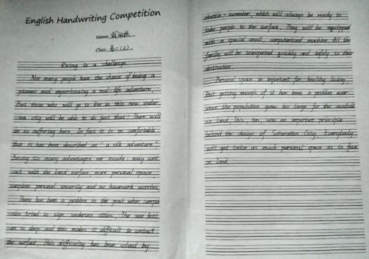 本次書(shū)寫比賽得到了老師和學(xué)生們的高度重視和積極響應(yīng)。許多學(xué)生提前就進(jìn)入比賽狀態(tài),高標(biāo)準(zhǔn)嚴(yán)格要求自己。比賽過(guò)程中,學(xué)生們一絲不茍、認(rèn)真書(shū)寫,充分展現(xiàn)了自己的書(shū)寫天賦。他們的作品書(shū)寫漂亮美觀,內(nèi)容充實(shí)完整,彰顯出英語(yǔ)書(shū)法藝術(shù)之美。這給其他學(xué)生樹(shù)立了一個(gè)學(xué)習(xí)的好榜樣!
