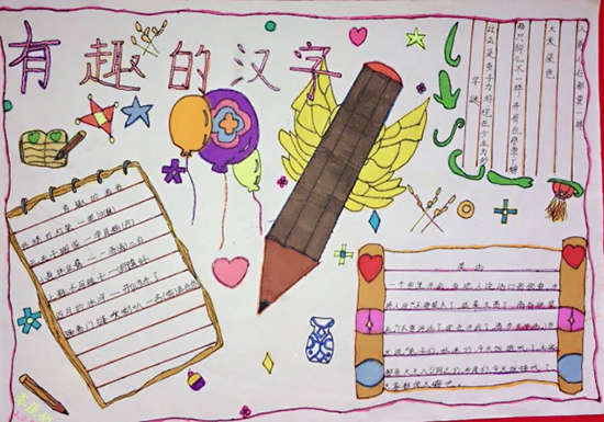 為了讓學(xué)生更好地了解漢字的起源,感受漢字的有趣和神奇,激發(fā)學(xué)生學(xué)習(xí)語文的興趣,近日,南昌現(xiàn)代外國語學(xué)校(象湖校區(qū))五年級組結(jié)合語文教材中《綜合性學(xué)習(xí):遨游漢字王國》,開展了“有趣的漢字”手抄報比賽。
