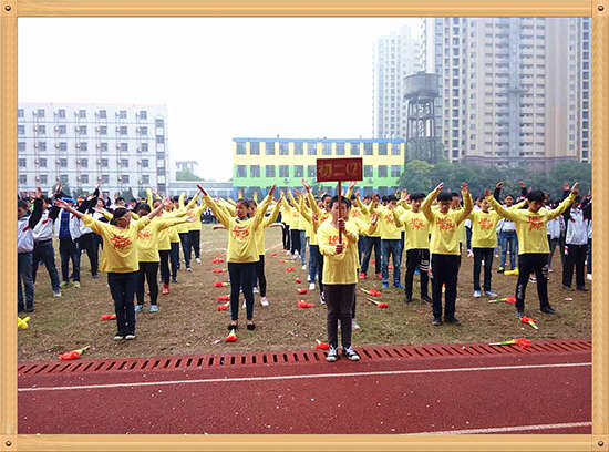 最后入場的是高一高二的各個班級。高中部的學生平時學業繁忙,他們只能利用體育課和課余的時間進行集體排練,可這絲毫沒有影響他們對于參加運動會的熱情。
