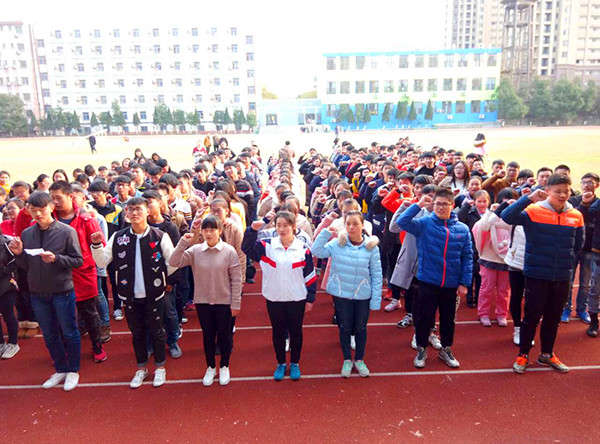 春日的陽光把每一位學子的臉映得通紅,學子們熱血激昂,我們將乘風破浪沖向彼岸,以青春的名義宣誓:鑄無怨無悔的青春。