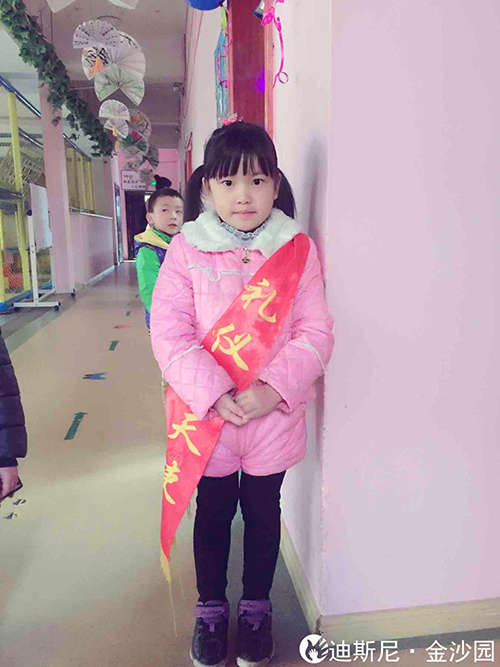 最近一段時間,每天早晨,迪斯尼幼兒園·金沙園的門口總會聽到“早上好”這樣溫暖的問候,原來這是金沙園的文明禮儀小天使們開始“上班了”。她們身披紅色綢帶,面帶笑容,整齊地站在幼兒園門口。每當有小朋友和家長走進校園,禮儀小天使們揮起右手,用稚嫩的聲音向大家問好,自己也能從情感上懂得禮儀行為的意義。