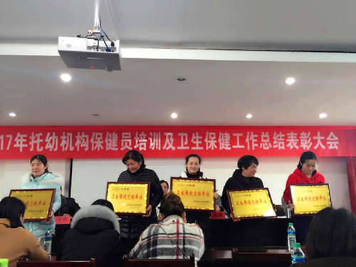 在本次總結表彰會上,迪斯尼金沙園獲得了南昌縣“衛生保健達標單位”表彰。今年,我們將繼續按照衛生部“托兒所幼兒園衛生保健工作規范”的要求,堅持“保教結合、預防為主”的方針,進一步做好衛生保健各項工作,不斷提兒童高膳食營養、體格鍛煉、健康檢查、衛生消毒、疾病預防等工作質量,提高衛生保健工作水平,確保在園兒童身心健康。