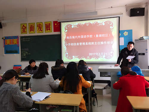 為進一步落實2017年南昌城區小升初報名暨信息采集工作會議精神,更好地開展2017年南昌市小升初報名暨網上信息采集工作,3月21日,南昌現代外國語學校(象湖校區)在參加青云譜區召開2017年小升初工作布置會的第二天,組織六年級班主任召開小升初信息采集工作培訓會。