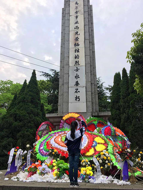 最后。全體學(xué)生在《烈士碑前》的音樂中,繞紀(jì)念碑緩緩一周,依次向先烈們敬獻自己親手扎的小白花。以此寄托對革命先烈們的深深敬意和無限哀思。