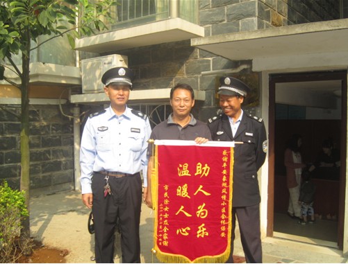 10月21日,平安·象湖風(fēng)情小區(qū)36棟3單元302室業(yè)主涂女士及家人高高興興來到聚龍物業(yè)管理處,將一面鮮艷的錦旗送到物業(yè)安防部領(lǐng)導(dǎo)手中,衷心感謝物業(yè)保安樂于助人的奉獻精神。錦旗正中寫著八個大字:“助人為樂,溫暖人心。”