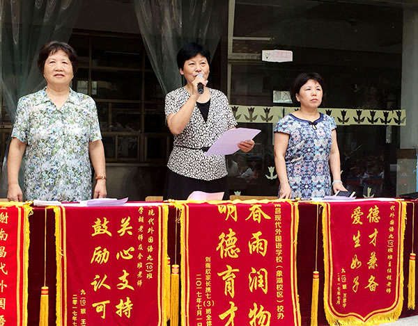 校長李金玉作典禮致辭,首先她代表學校向本學期來我校學習的1000多名新同學和17名新老師表示熱烈的歡迎。她在講話中全面回顧了上學期在教學方面取得的喜人成果。一學年來,學校在上級各主管部門的關心支持下,在全體師生共同努力下,一心一意謀發展,聚精會神抓質量,家長口碑好,社會評價高,譜寫了學校發展史上濃墨重彩的一筆。并對新學期各項工作提出了新要求和新希望,希望老師帶著一顆熾熱的心融入到現外象湖學校這個大家庭中,繼續堅持以德育為首,以教學為中心,以創新為動力,以管理為基礎,以質量為生命。告誡學生認真上好每一節課,認真完成作業,多看課外書,拓展知識面。