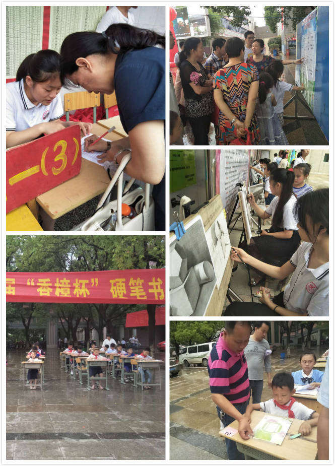 教學樓后的林蔭操場,年輕的媽媽俯身欣賞女兒的書法創作,年輕的爸爸凝神賞視兒子的作品,那眉宇之間是難以言說的情意。
