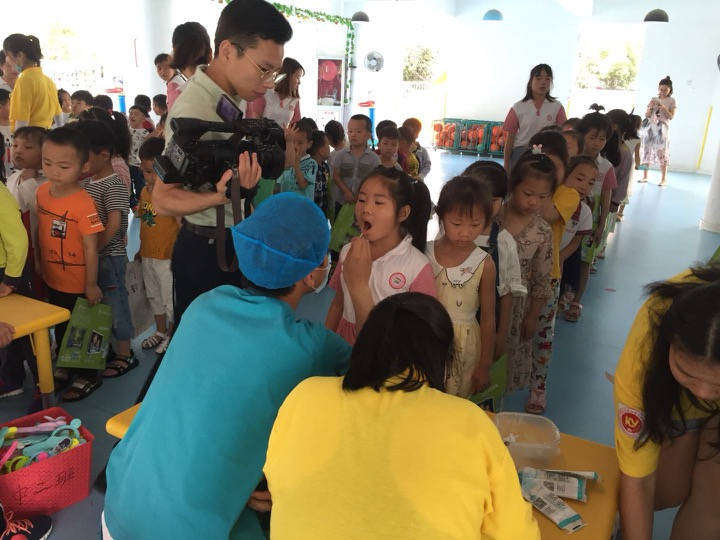 5月24日上午江西教育電視臺攜手江西衛(wèi)生職業(yè)學(xué)院口腔門診部義診團隊來到我們迪斯尼象湖園,為中、大班的孩子們進行口腔健康檢查,義診現(xiàn)場,醫(yī)生們認真的給每個孩子檢查齲齒、錯合畸形、口腔衛(wèi)生等檢查,一邊給孩子們檢查的同時,一邊提醒他們應(yīng)該怎樣注意口腔健康,并針對發(fā)現(xiàn)的問題逐個指導(dǎo)孩子做好日常保健,養(yǎng)成良好的口腔衛(wèi)生習(xí)慣,為孩子們建立口腔健康檔案。