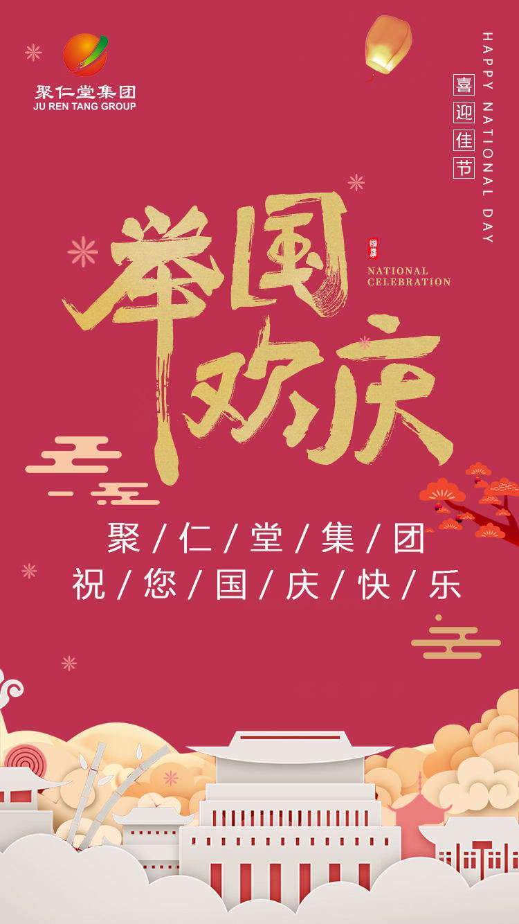 普天同慶賀華誕,神州大地俱歡顏。我們迎來了祖國69歲生日,世界各地的華夏兒女歡騰賀國慶,深深祝福偉大的祖國母親!值此之際,聚仁堂集團(tuán)向全體員工表示節(jié)日祝福:祝大家國慶快樂,闔家歡樂!特別是節(jié)日期間堅(jiān)守在工作崗位的員工,你們辛苦了!感謝你們!因?yàn)橛心銈儯?/span>聚仁堂會(huì)有更好的明天!