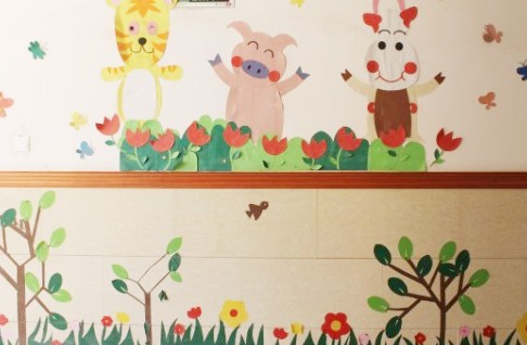 老師們集思廣益,利用各色各類紙、板、盒以及其他可再利用的材料,通過畫、剪、貼、折、編等多種方式,布置出了一幅幅主題墻飾。在幼兒園領導帶領下,大家群策群力,從教室內外墻壁、吊飾物、美麗花園、區角活動等幾個方面進行設計裝飾。