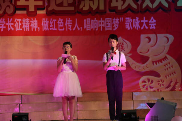 6月1日下午,小學(xué)部在演播大廳舉行了“學(xué)長征精神,做紅色傳人,唱響中國夢”歌詠大會。全體少先隊員在老師的帶領(lǐng)下有順序地登上舞臺,情緒激昂地表演了許多耳熟能詳?shù)慕?jīng)典紅歌。