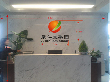 首先,電梯出口的形象墻設(shè)計(jì)至關(guān)重要,是集團(tuán)對(duì)外展示的第一個(gè)窗口,此外,這一區(qū)域的設(shè)計(jì)還應(yīng)起到一個(gè)指引的作用,告訴來(lái)賓集團(tuán)所處的方位。所以,集團(tuán)文宣部對(duì)此處的風(fēng)格定位以簡(jiǎn)單大方,采用豎式的LOGO,并下面擺一些盆栽作為襯托。辦公區(qū)前臺(tái)的布置將直接影響來(lái)賓對(duì)集團(tuán)公司的整體印象,此處設(shè)計(jì)應(yīng)當(dāng)大氣,采用的也是豎式的LOGO設(shè)計(jì)方案,與電梯出口處的設(shè)計(jì)相統(tǒng)一,但在材質(zhì)上將采用有厚度的亞格力板,LOGO設(shè)計(jì)將采用噴漆的形式表現(xiàn)出紅綠色漸變的感覺(jué),可以使整體感覺(jué)比較立體,既有厚度,顏色上也有變化,與前臺(tái)灰色紋理大理石的墻面形成對(duì)比。
