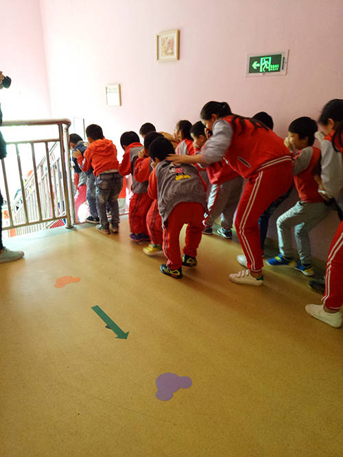 演練前,全體教職工和幼兒就象往常一樣工作和開展各種活動。中班、大班幼兒在教室觀看有關安全方面的動畫片,小班在上課。大家一概不知道演習的起火地點和時間。突然,一陣急促的警報聲,瞬間傳遍整個幼兒園,楊書正園長組織了消防疏散領導小組,讓他們隨機應變、各行其職,既有分工又有合作的緊急疏散。