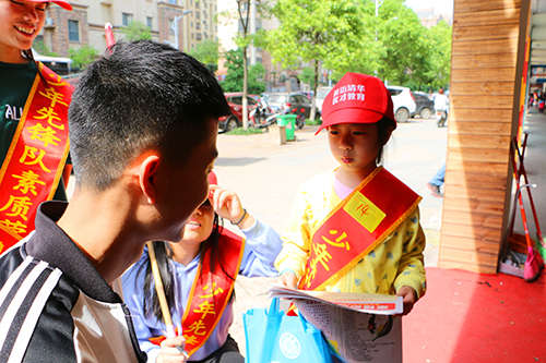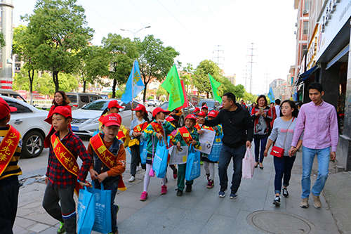 活動(dòng)中,不是每一個(gè)小朋友天生就擅長(zhǎng)與人溝通,有些孩子怯于開口,總想躲在家長(zhǎng)的后面,遲遲不敢邁出第一步,不敢大聲開口招呼路人;有的孩子也遇到路人根本不會(huì)停下匆忙的腳步聽你講話,也有人聽完后只是微微一笑走開。滿腔的熱情卻被現(xiàn)實(shí)潑了一盆冷水,讓小朋友感受一下挫折教育,增強(qiáng)一下抗壓力也是此次活動(dòng)的一筆巨大收獲。