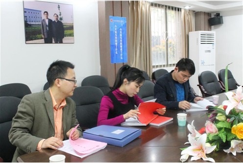 檢查小組與江西工商職業(yè)技術(shù)學(xué)院領(lǐng)導(dǎo)針對(duì)文宣工作進(jìn)行交流