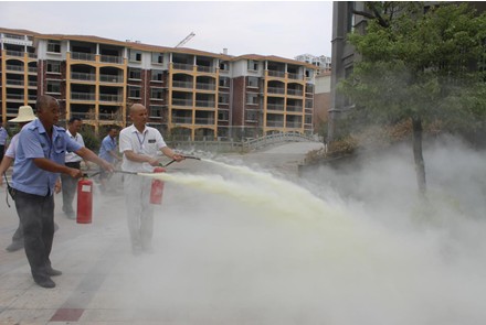 據(jù)了解,此次培訓(xùn)主要圍繞物業(yè)人員消防職責(zé)、火災(zāi)發(fā)生時(shí)人員組織疏散逃生措施、消防設(shè)備日常檢查及滅火器的使用介紹等方面展開。演練開始前,保安人員在物業(yè)公司保安隊(duì)長(zhǎng)的帶領(lǐng)下進(jìn)行隊(duì)列訓(xùn)練。隨后,參演保安人員依次使用滅火器和消防栓進(jìn)行滅火消防演習(xí)。