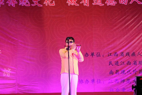 演出中,校長涂序健上臺接受了“心靈之聲”藝術團贈送的墨寶《志存高遠》,并代表全校師生對參加表演的殘疾演員表示衷心的感謝并致以崇高的敬意。