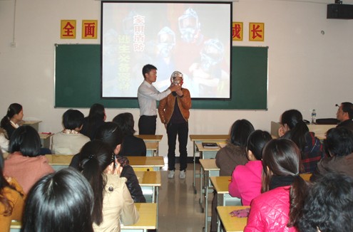侯佑平主任用通俗易懂的ppt方式,以大量的照片和實例,生動地講述了火災給人們造成的危害,讓大家引以為戒。侯主任為大家講述了火災的類型,如何防止燃氣、電氣火災,以及發生了火災時自救的方式方法,并且輔以實物傳授滅火器、防毒面具的使用方法,內容豐富、形式多樣,使與會人員受到了深刻的教育和啟示。